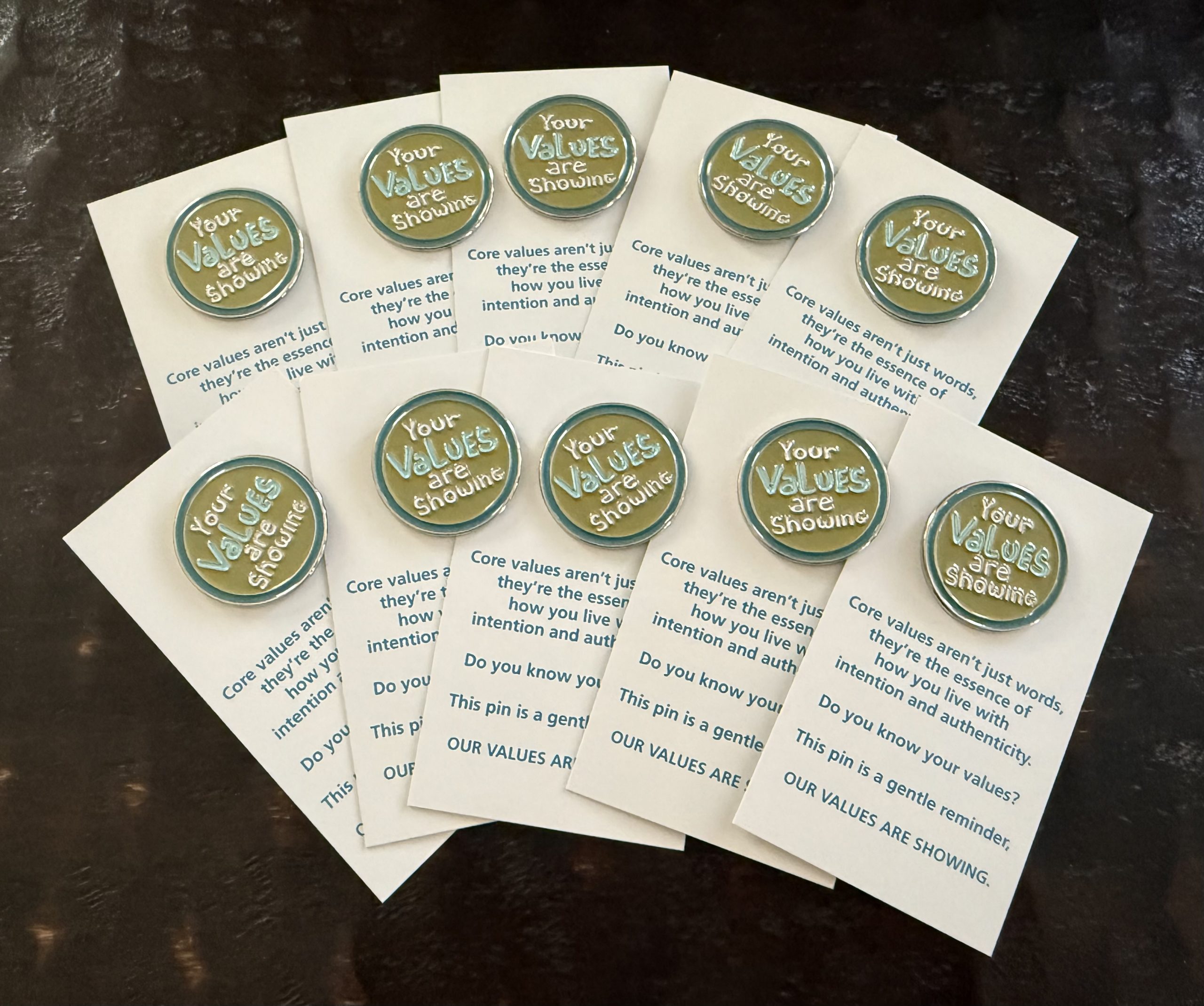 This pin serves as a gentle, ongoing reminder that our values are visible through our actions. Whether recognizing an employee’s ethical decision, a team member’s collaborative spirit, or a client’s breakthrough in authentic living, this pin acknowledges that values in action deserve recognition.